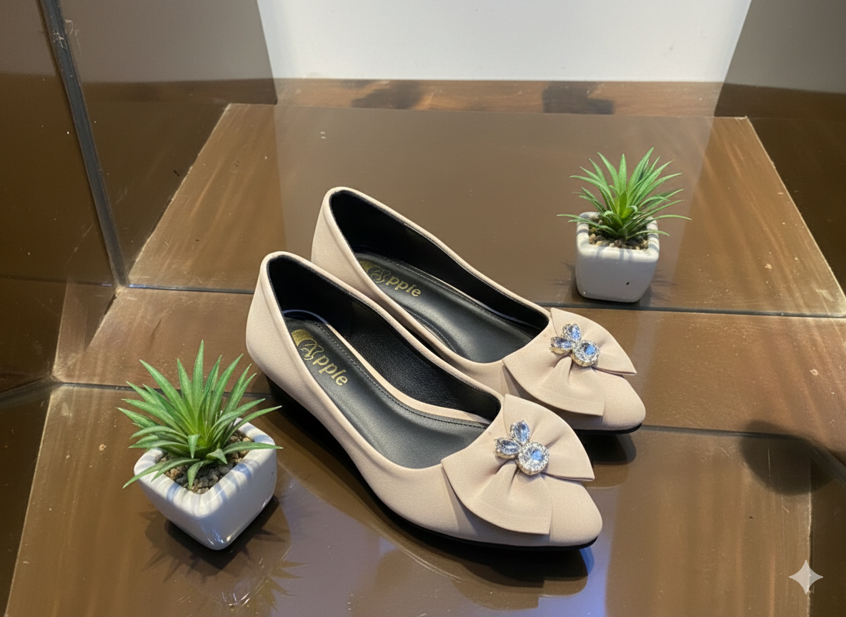 Step into effortless elegance with our Bow Crystal Belly designed for women who love comfort with a touch of sparkle. Crafted in timeless black and beige, these belly shoes feature a delicate bow detail adorned with crystal accents, making them perfect for both everyday wear and special occasions.