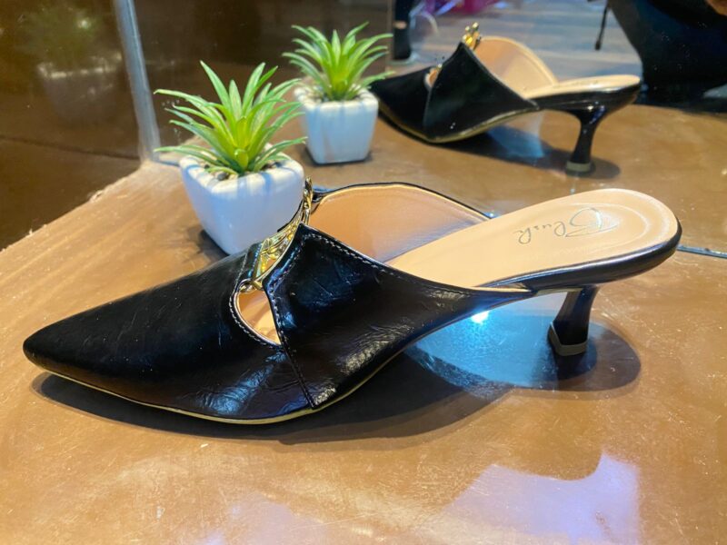The easy slip-on design paired with a comfortable kitten heel makes it perfect for office wear, meetings, brunches, and evening outings. Its versatile black shade complements trousers, dresses, and ethnic fusion looks, making it a wardrobe essential. Pointed Mule Dollar – Black Elegant Kitten Heel Slip-On