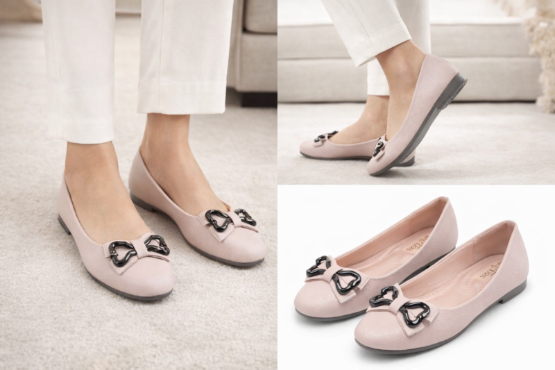 Add effortless charm to your everyday style with the Urban Bow Belly flats from SoleGrace. Designed in a soft light pink and grey combination, these ballerina flats feature a sleek metallic bow accent that elevates the look with modern elegance.